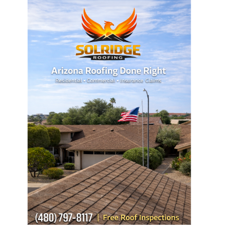 SolRidge Roofing LLC is a locally owned Arizona roofing company built on experience, accountability, and quality workmanship. With over six years of hands-on roofing experience, we specialize in residential and commercial roof inspections, repairs, replacements, and re-roofing systems.